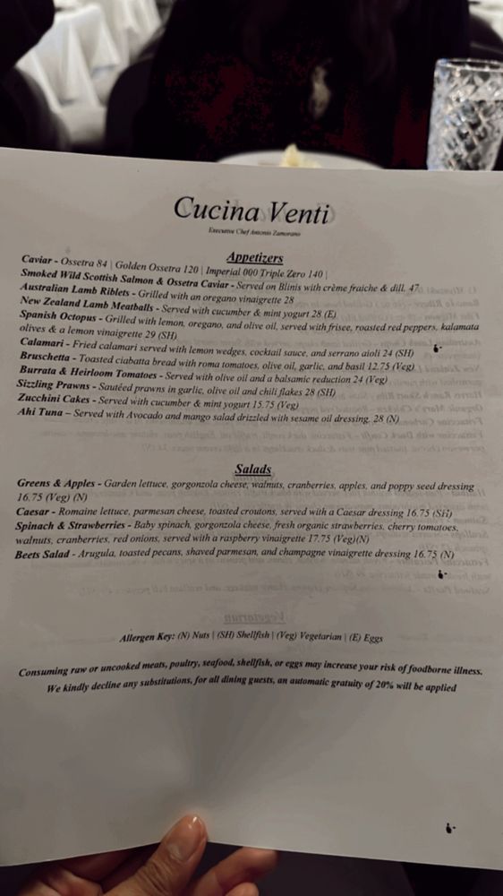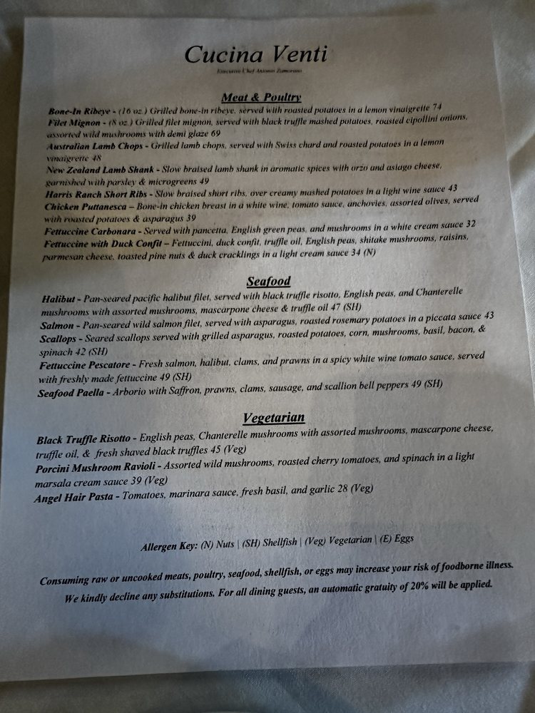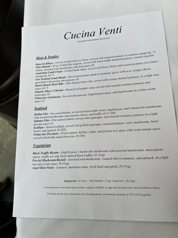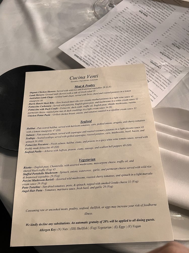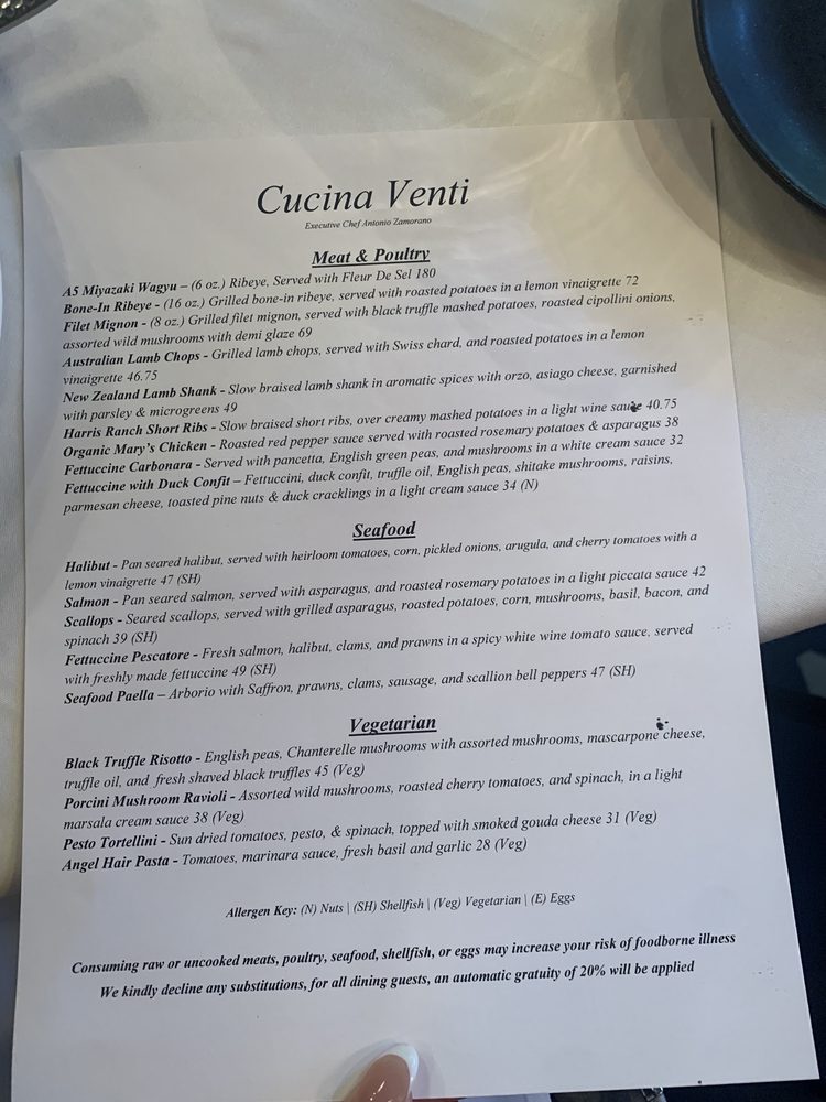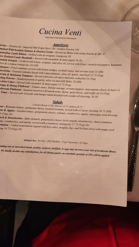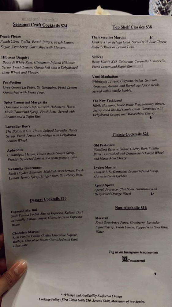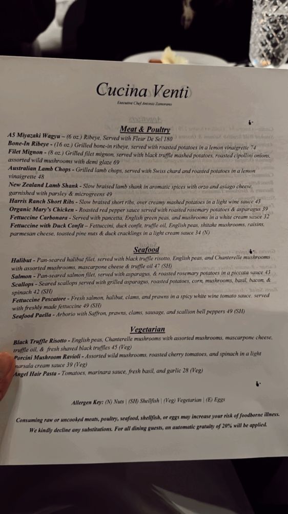 Introducing the menu at Cucina Venti Restaurant, a hidden gem in Mountain View, CA, offering a mix of Italian and seafood dishes. The restaurant boasts a cozy and romantic ambiance, perfect for special occasions or casual dining. Customers praise the impeccable service, with attentive wait staff catering to their needs. The menu features options for vegans, vegetarians, and meat lovers alike, with standout dishes like the tender short rib and mouth-watering ravioli. The sophisticated cocktail bar offers a variety of drinks, including creative specialty cocktails. Outdoor seating with heating and shelter, private dining options, and a pool table provide a unique dining experience. With an upscale feel but unchanged quality, Cucina Venti Restaurant is a must-visit spot for those looking to treat themselves to a memorable meal.
